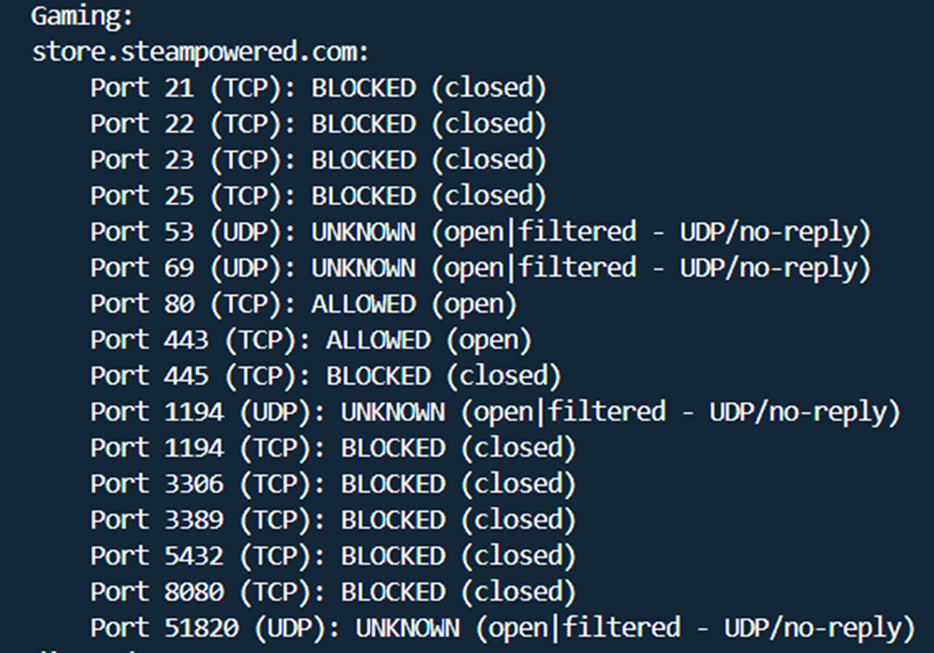 • Service-Specific Blocking: Firewalls identify and drop packets associated with gaming platforms like Steam or Epic Games.