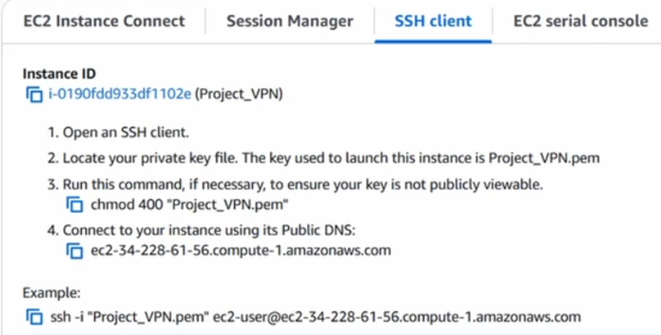 ssh -i "Project_VPN.pem" ec2-user@<Your-Elastic-IP>