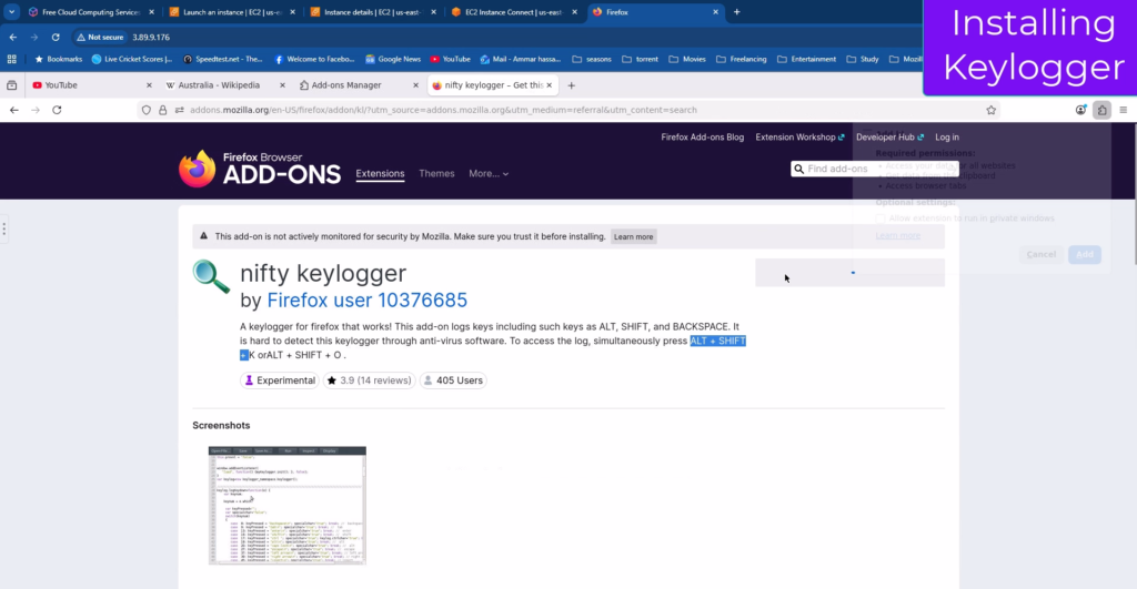 Search for “keyloggers”. We will get many results. We will use Nifty Keylogger for our purpose. Select it and add it to Firefox.